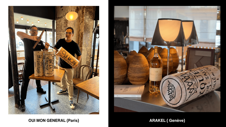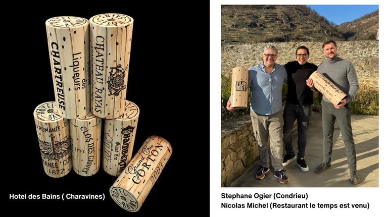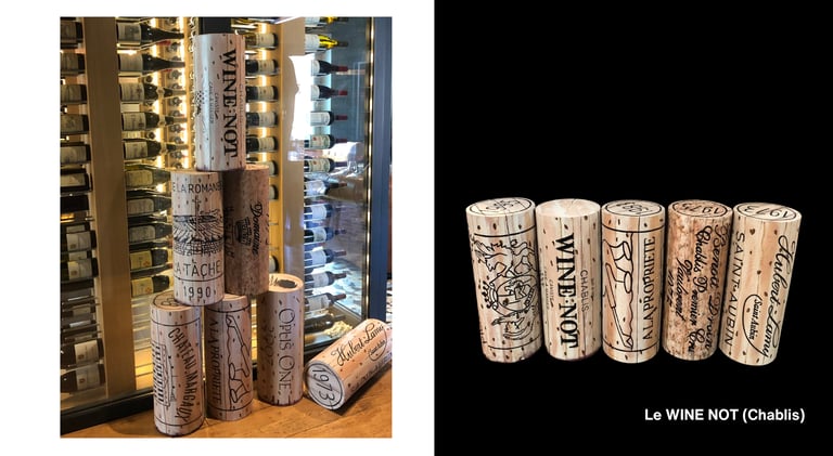 Nous proposons des bouchons géants en bois, chacun étant une œuvre d'art unique.